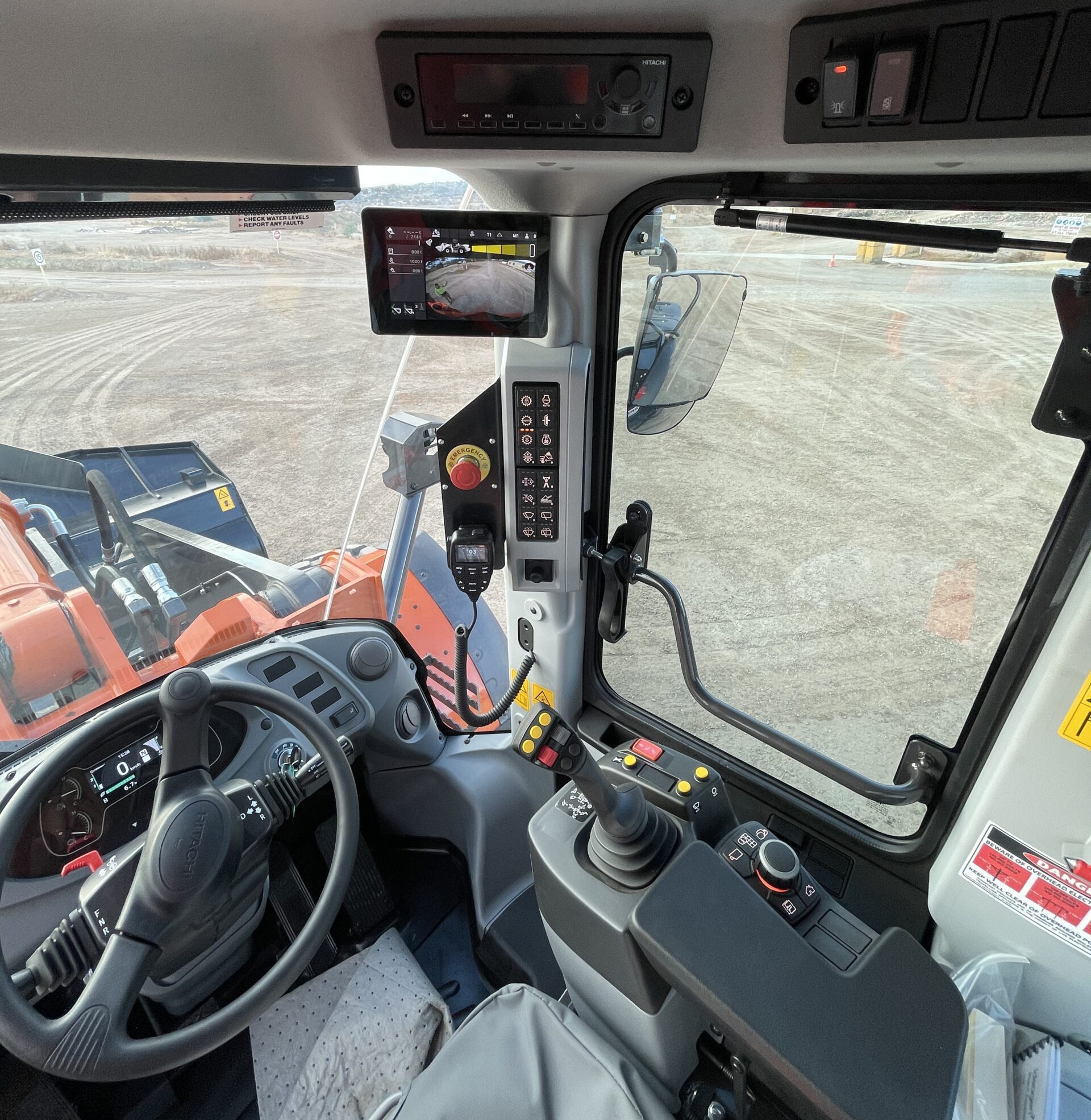 The new large multi-function LCD screen on the Hitachi 25 tonne wheel loader provides operators with pertinent information in a quick and easy to use format. The redesigned engine cover allows for fast, ground level maintenance – making it easier than ever before for workers to perform inspections or make necessary repairs. For convenience, the automatic transmission automatically selects optimal gears when travelling and digging!